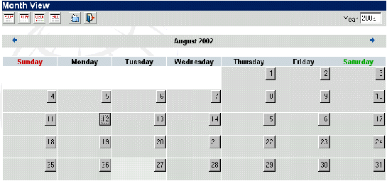 To view a specific day, you can click its corresponding number. This will take you to the times and events for that day. You'll notice that there is also a specific toolbar for the calendar. see The Calendar Toolbar for more information. |