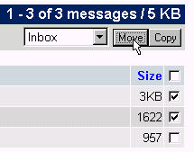 In this case, the first two messages will be Moved to the Inbox. The drop menu allows you to choose any of the folders that are preset, or any that you have created (see Managing Folders for more information on that topic).